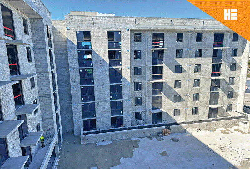 Havana Enclave General Contractor BDI Construction is almost finished framing the 179-unit building’s club lounge and business center. Electrical connections for all air-conditioning units are well underway on the roof. This follows the beginning of stucco work on the building’s exterior, and successful installation of drywall on multiple floors.